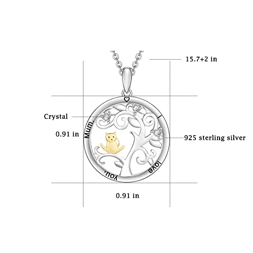 MESASTOM Collana da donna con ciondolo a forma di albero genealogico e gatto, in argento Sterling 925, con incisione personalizzata, regalo per mamma, nonna, figlia, Argento sterling, cristallo