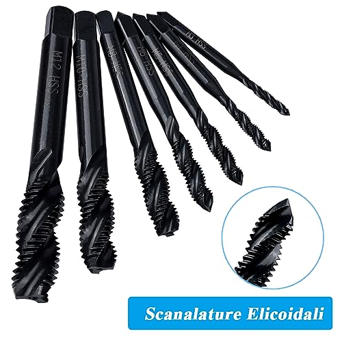 Kit di utensili filettati che contiene sette diverse dimensioni di maschi M3 M4 M5 M6 M8 M10 M12 per soddisfare le vostre diverse esigenze.