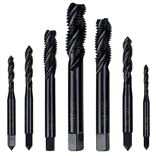 Mesee 7Pz Maschi a Filettatura Elicoidale HSS, Maschio per Filettare Metrico Filettati a Macchina in Acciaio Rapido Rivestimento in Nitruro Strumento di Filettatura Assortimento M3 M4 M5 M6 M8 M10 M12