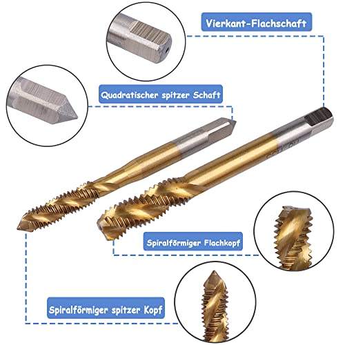 Materiale: maschio a spirale in acciaio rapido 6542 rivestito in titanio per resistenza alla ruggine. Taglio rapido, resistenza alle alte temperature e maggiore durata.