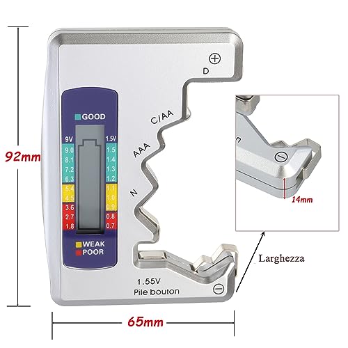 Misuratore di Batterie, realizzato in plastica resistente e acciaio inossidabile, portatile e leggero, facile da trasportare.