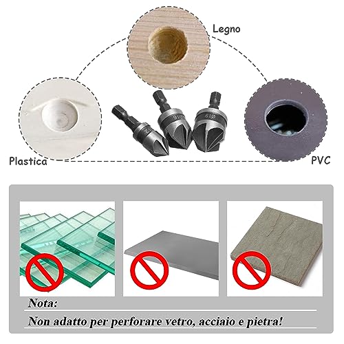Si Prega di Notare: Non utilizzare queste frese svasatore su materiali metallici ad alta durezza!