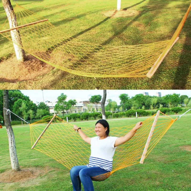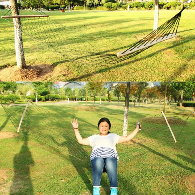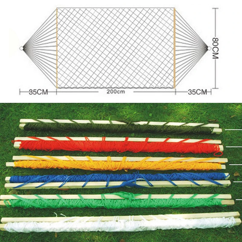 The Mesh Camping Hammock with Wooden Bar 80cm Single-person Nylon Rope Hanging Chair with Tree Rope Summer Swing Bed