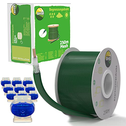 MESH - Cavo di limitazione 250 m + 10 connettori per robot tosaerba, robot tosaerba, set di accessori per cavi di ricerca - compatibile con GARDENA/BOSCH/HUSQVARNA/WORX/HONDA/ROBOMOW/iMow