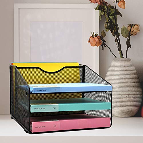 Mesh Desk File Organizer Lettera vassoio, Desktop Appeso File Cartella Holder con 3 vassoi di carta e 1 Verticale...