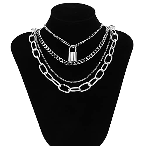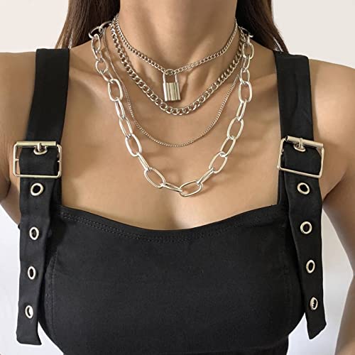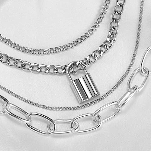 Mesnt Collana Estiva Donna, 4 Pezzi Collana Multistrato Donna Blocco retrò Punk Collane a Catena con Ciondolo Catenina Regolabile, Regalo di Gioielli Estivi per i Migliori Amici, Argento