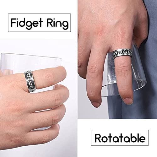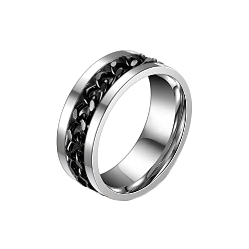 Mesnt Spinner Anello, Anello con Bande Fidget a Catena Nera 8MM Nero Taglia 17