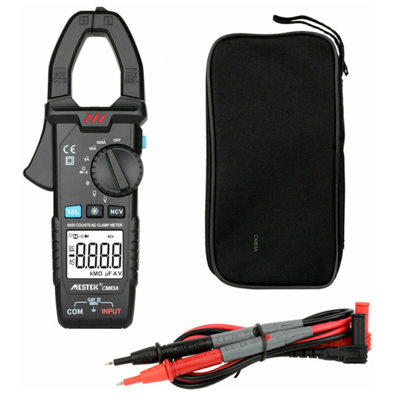 Realizzato in materiale di alta qualità, comodo, facile da usare e da usare, ampia gamma di applicazioni, ha una lunga durata. Caratteristiche: Funzione utile, veloce risposta, funzionamento semplice, design anti-scottatura. La pinza amperometrica digitale serie CM83 soddisfa diversi livelli di misurazione. Funzione CM83A: portata manuale, 600 A CA, misurazione della resistenza (0-6 KΩ), continuità/diodo, misurazione della capacità, tensione CC 600 V, CA 600 V tensione, rilevamento tensione AC NCV senza contatto, pinza flash/retroilluminazione, mantenimento dati., Tensione CA 600 V, rilevamento della tensione CA senza contatto NCV, pinza flash/retroilluminazione, mantenimento dati, vero RMS, AUTO-LoZ, test di protezione della corrente di dispersione RCD, misurazione della corrente a frequenza variabile.Può essere utilizzato in una varietà di ambienti di prova utilizzati: manutenzione elettromeccanica, riparazione dell'aria condizionata, manutenzione elettrica, istruzione e