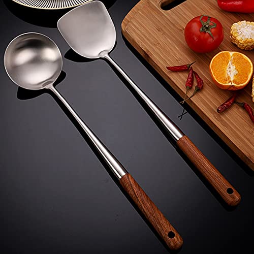 Set mestolo per spatola per wok in acciaio inossidabile, spatola per wok in stile cinese e mestolo per schiumarola con manico in legno(Turner)