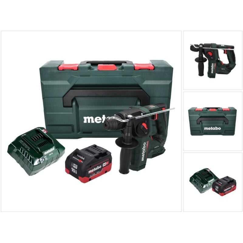 Dotazione: - 1x Metabo BH 18 LTX BL 16 Tassellatore a batteria 18V - 1x Impugnatura aggiuntiva - 1x Arresto di profondità - 1x Valigetta MetaBOX 145L - 1x Batteria Metabo LiHD da 10,0 Ah - 18V ( 625549000 ) Sistema CAS - 1x Caricabatterie Metabo ASC 55 ( 627044000 ) Descrizione prodotto: Il tassellatore a batteria BH 18 LTX BL 16 con portautensili SDS-plus è molto leggero e compatto che, grazie al suo motore senza spazzole e al Metabo Vibratechh (MTV), garantisce un lavoro poco faticoso e salutare, anche in caso di uso continuo. La tecnologia brushless e il meccanismo d'impatto ad alte prestazioni assicurano anche la massima performance di perforazione, efficienza e durata. L'elettronica integrata Vario-Tacho-Constamatic (VTC) ad albero intero supporta il lavoro con velocità specifiche del materiale che rimangono costanti sotto carico. La sua luce di lavoro a LED supporta la vista del sito di perforazione. Il tassellatore a percussione ha due funzioni: la foratura a martello e la