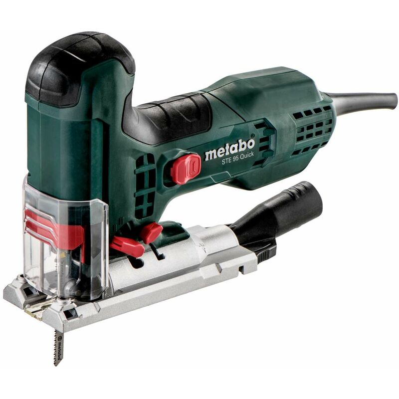 Sega alternativa elettrica taglio preciso grazie al numero variabile di corse, alla corsa oscillante e al guidalama ribassato a molla Metabo Quick per un cambio utensile rapido senza chiave funzione di soffiaggio della segatura elettronica a onda intera Vario-Constamatic (VC) opzioni di aspirazione con un aspirapolvere Informazioni tecniche: Potenza nominale: 701 W Potenza di uscita: 460 W Tensione di rete: 220 - 240 V profondità di taglio del legno: 95 mm profondità di taglio metallo NF: 20 mm profondità della lamiera d'acciaio tagliata: 8 mm campo di rotazione da/a: -45 / +45° Livelli di sollevamento del pendolo: 4 Tratti inattivi: 1 000 - 3 100 ot./min Corsa della lama della sega: 22 mm La confezione contiene: sega alternativa bocchetta di aspirazione vetro protettivo Lama per seghetti alternativi per legno chiave esagonale valigia in plastica