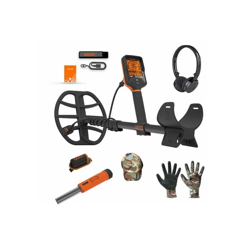 Quest metal detector Q35 3 frequenze di ricerca (Expert pack) Descrizione Il Quest Q35 è dotato di 3 frequenze di ricerca intercambiabili ed è completamente impermeabile fino a una profondità di 5 metri sotto l'acqua. Viene fornito con un modulo radio integrato e cuffie Quest Wirefree Lite senza fili. È dotato di una piastra di ricerca DD Raptor11 da 28 x 26 cm per una maggiore profondità e reattività. Il Q35 è leggero, compatto, ergonomico e molto robusto. La batteria al litio Li-Po integrata da 3000 mAh può essere ricaricata magneticamente e l'illuminazione dell'indicatore arancione completa l'aspetto unico. Frequenze di ricerca intercambiabili Con il Quest Q35 hai anche la possibilità di cambiare la frequenza di ricerca. Ad esempio, se preferisci cercare oggetti più grandi sepolti, è consigliabile impostare il Q35 su 5 kHz. Se stai cercando solo piccoli gioielli o piccoli pepite d'oro, è meglio impostare il Q35 su 21 kHz. Se stai cercando solo monete, è meglio impostarlo su 13 kHz.