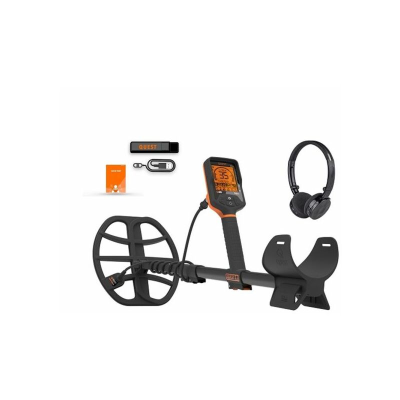 Quest metal detector Q35 3 frequenze di ricerca (Start pack) Descrizione Il Quest Q35 è dotato di 3 frequenze di ricerca intercambiabili ed è completamente impermeabile fino a una profondità di 5 metri sotto l'acqua. Viene fornito con un modulo radio integrato e cuffie Quest Wirefree Lite senza fili. È dotato di una piastra di ricerca DD Raptor11 da 28 x 26 cm per una maggiore profondità e reattività. Il Q35 è leggero, compatto, ergonomico e molto robusto. La batteria al litio Li-Po integrata da 3000 mAh può essere ricaricata magneticamente e l'illuminazione dell'indicatore arancione completa l'aspetto unico. Frequenze di ricerca intercambiabili Con il Quest Q35 hai anche la possibilità di cambiare la frequenza di ricerca. Ad esempio, se preferisci cercare oggetti più grandi sepolti, è consigliabile impostare il Q35 su 5 kHz. Se stai cercando solo piccoli gioielli o piccoli pepite d'oro, è meglio impostare il Q35 su 21 kHz. Se stai cercando solo monete, è meglio impostarlo su 13 kHz.