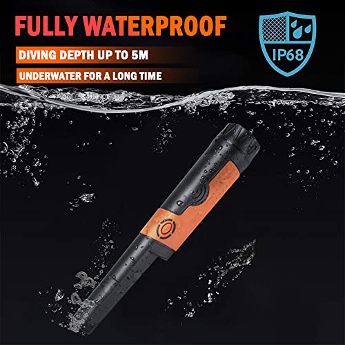 【Design Completamente Impermeabile IP68】 Questo Pinpointer Metal Detector utilizza un processo di produzione sigillato per raggiungere il livello di impermeabilità IP68 (ovvero, l'intero corpo può essere immerso nell'acqua). Puoi portare questo pinpointer per immergerti a una profondità di 5-8 M.