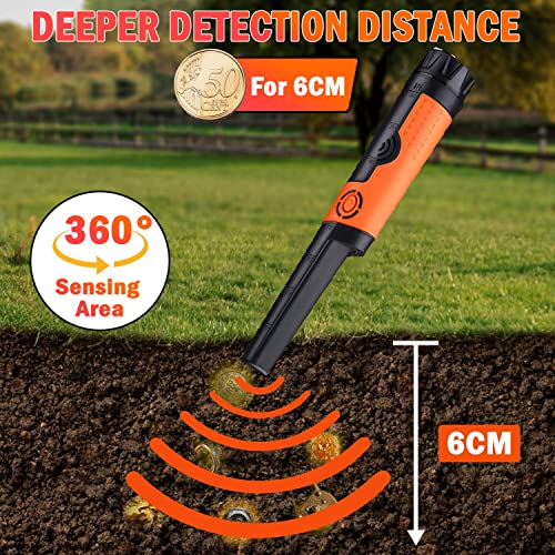 【Profondità di Rilevamento: 5 cm per 20cent】 Questo pinpointer metal detector si comporta molto bene anche nel campo di rilevamento. Secondo lo standard del settore di rilevamento a 20 centesimi, questo pinpointer può rilevare una profondità di 5 cm. La profondità di rilevamento di oggetti metallici più grandi può raggiungere 11 cm.