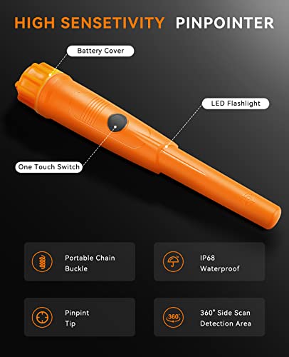 Funzionamento semplice con un pulsante: Pinpointer metal detector il funzionamento con un solo pulsante può accendere il dispositivo e cambiare modalità. Tutto quello che devi fare è premere il pulsante e iniziare a cercare tesori! Più adatto ai bambini. La lunghezza e il peso del metal detector sono rispettivamente di soli 27 cm e 340 g. È la scelta migliore per i regali, come regali di Natale, regali di compleanno, ecc.