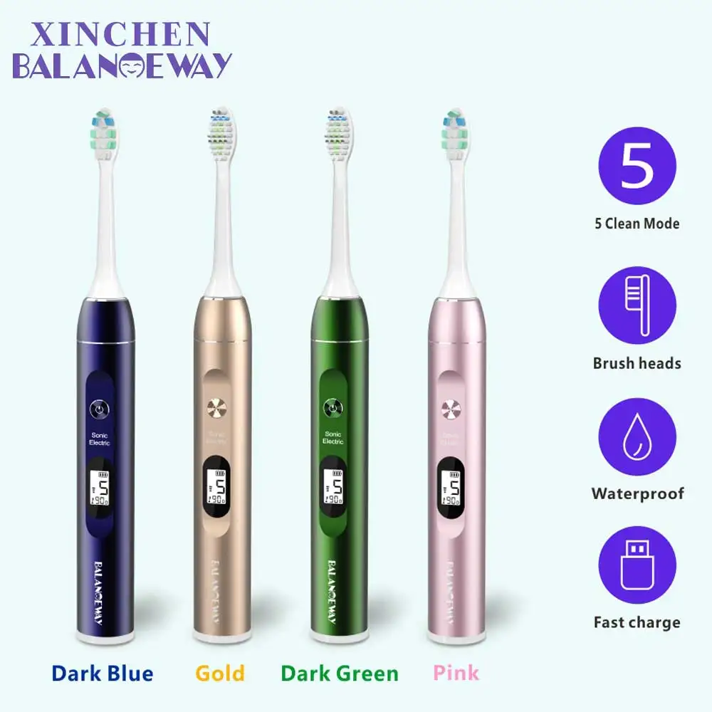 Metal Digital Screen 5 Modes Sonic Electric Toothbrush IPX7 Wireless Rechargeable Ultrasonic With Tooth Brush Whitening Adult
