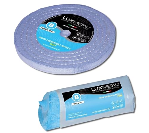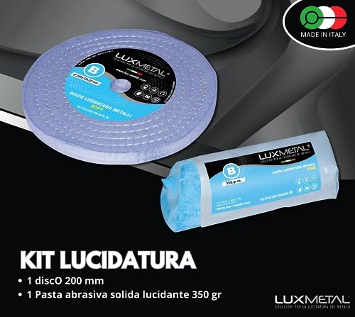 Lux Metal -1 Disco Lucidatura 200mm Soft e 1 Pasta Abrasiva Fine 350gr - Ideale per lucidare su Alluminio,ferro,acciaio inox disco lucidatura pasta abrasiva solida lucidare metalli disco lucidatura