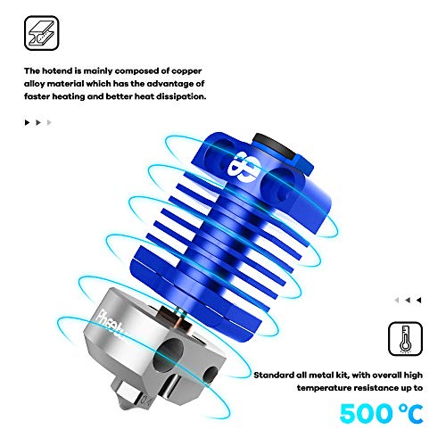 Hotend è progettato e prodotto dal nostro partner (PHAETUS). La qualità è molto alta. La temperatura di stampa di questo hotend può raggiungere fino a 500 gradi se il riscaldatore e il sensore di temperatura lo permettono, il tubo riscaldatore e il sensore di temperatura non sono inclusi, si prega di considerarlo prima di ordinare. Questo hotend con fori di installazione è compatibile con la stampante 3D Creality serie CR10, Ender serie 3, Ender serie 5;