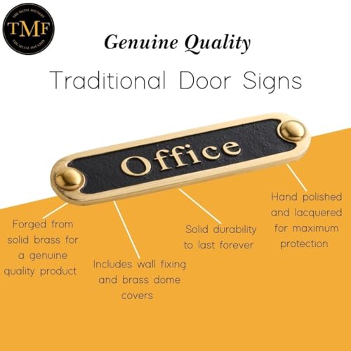 The Metal Foundry - Targa in Metallo per Porta Stile Tradizionale Home Decor Accessori Porta o Parete placca in Ottone Realizzato a Mano in Inghilterra. Tradizionale Ottone (Oro) e Nero.
