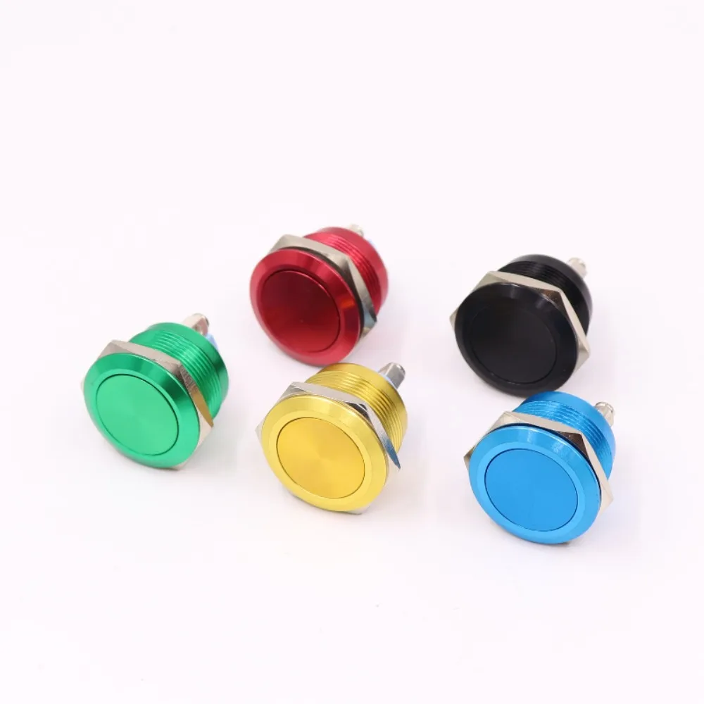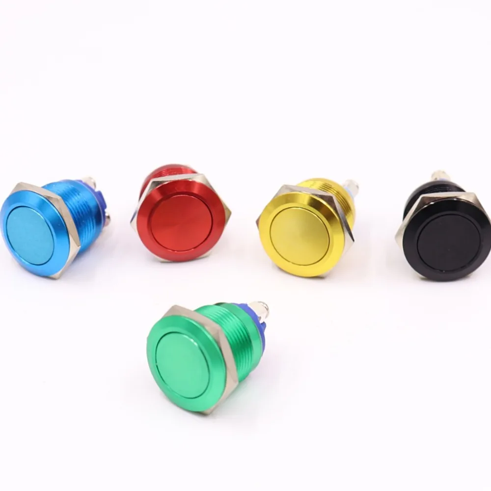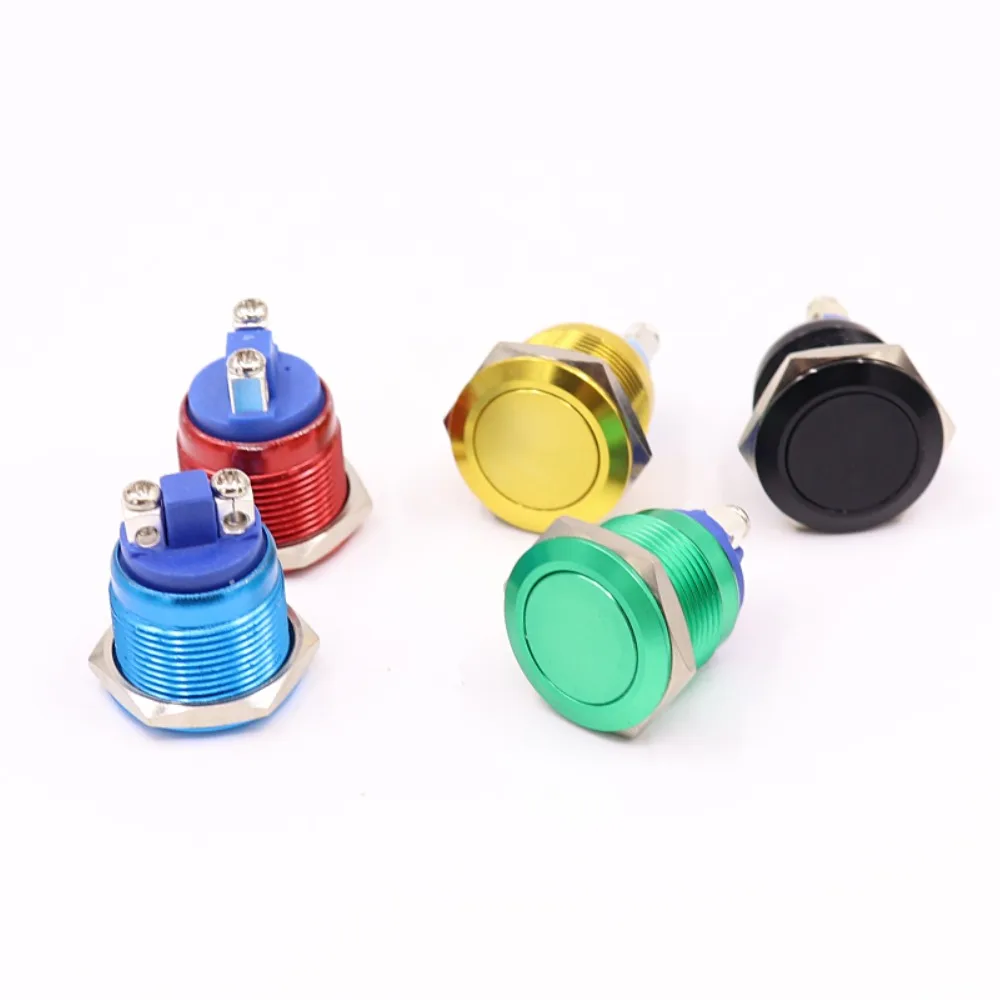 Metal Push Button Switch Waterproof IP65 Oxidation Self Reset Momentary 19mm Red Blue Black Green Yellow Color 1NO