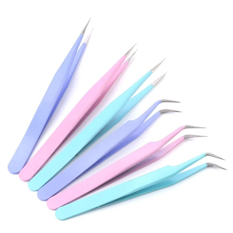 1pc Metal Tweezers for Eyelash Extensions Straight Curved Tip Tweezers Nippers False Lash Application Tools for Salon Home Use