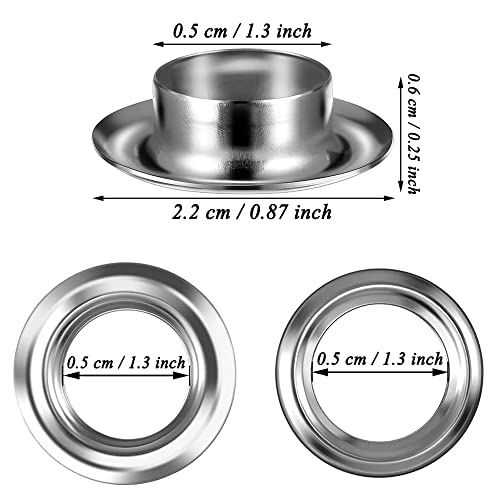 Contenuto Della Confezione: Questo set include un set di 50 occhielli, con 50 occhielli e 50 rondelle e una scatola trasparente. Occhielli di circa 20 mm / 0,79 pollici di diametro interno del foro, circa 32 mm / 1,26 pollici di diametro esterno. Nota: lo strumento di perforazione non è incluso.