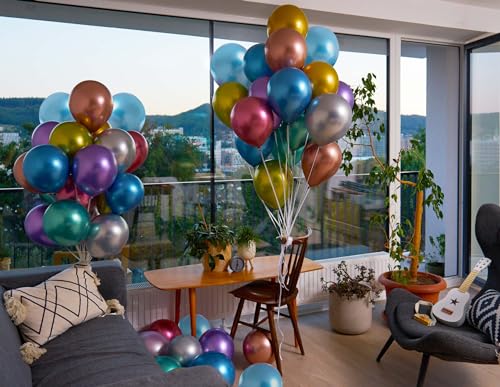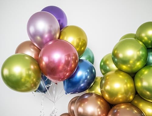 Metallici Palloncini 60 Pezzi + 2 Nastri - 30 cm - 10 Chrome Colori - Assortiti Lattice Palloncini Compleanno - Celebrazioni Palloncini - Palloncino Feste - Palloncino elio per Matrimoni Anniversari