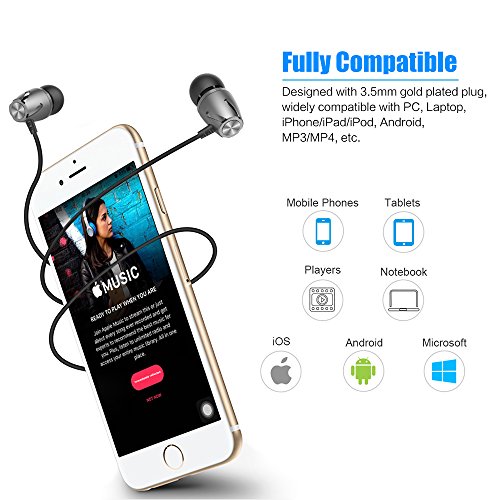 Metallo cuffie, auricolari Iegeek cavo Earbus con microfono cancellazione del rumore bassi potenti, non si attorciglia per iPhone, iPod, iPad, Samsung Galaxy, HTC, Nexus, Android, PC, laptop, lettori MP3, ecc