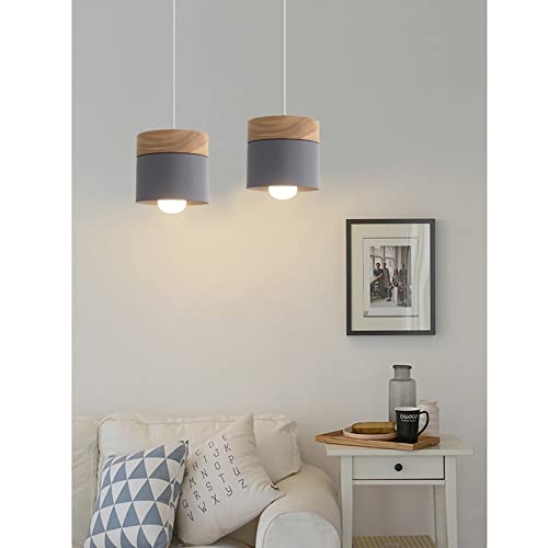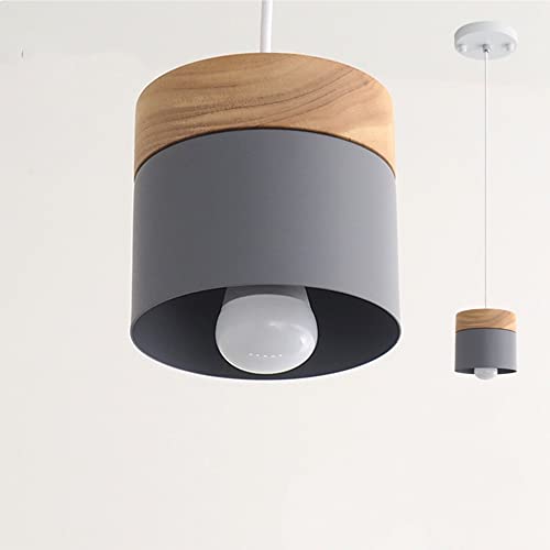 Metallo Lampadario a Sospensione a LED, E27 Lampada a Sospensione, Design Moderno lampada da soffitto,legno Lampada a sospensione, per Soggiorno, Camera, Sala da Pranzo (Grigio)