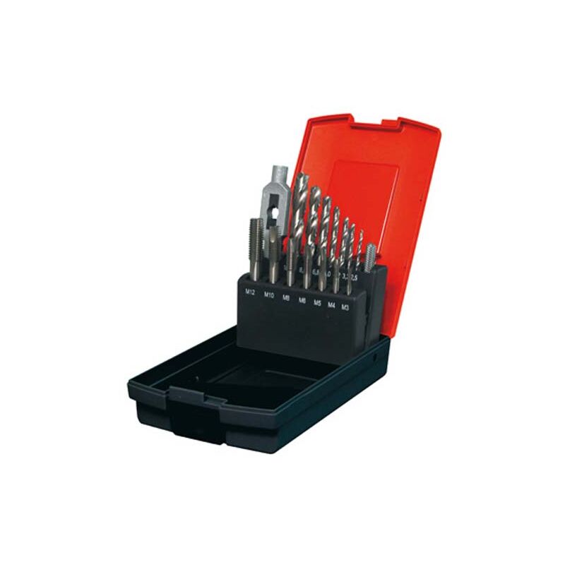 Il Set di maschi MTMS15 di Metal Works è composto da 15 pezzi con 7 tipi di maschi HSS M2 e le rispettive 7 filiere corrispondenti. Presentato in una pratica custodia in PVC che ci permetterà di avere gli attrezzi organizzati e sempre a portata di mano. /br>p> /br>p>Misurazione maschi M3 - M4 - M5 - M6 - M8 - M10 - M12 span>-Il set di maschi Metal Works MTMS15 è composto da 15 pezzi con 7 tipi di maschi M2 HSS e le relative 7 matrici di filettatura corrispondenti punta del trapano. Presentati in una pratica valigetta in PVC che ci permetterà di avere gli attrezzi organizzati e sempre a portata di mano.Matrici modificate M3 - M4 - M5 - M6 - M8 - M10 - M12Punte modificate 2,5 - 3,3 - 4,2 - 5,0 - 6,8 - 8,5 - 10,2 mm