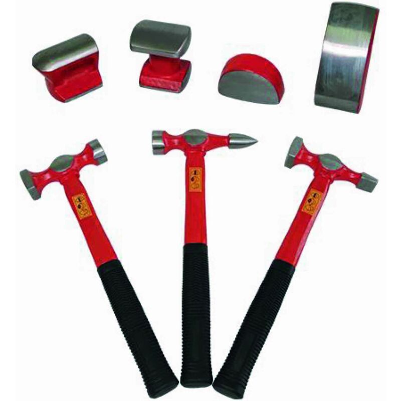 Il set di utensili per lamiera MetalWorks CALS1001AA è composto da 7 pezzi: 3 viti con manici in fibra vibrio e le 4 viti più utilizzate. Adatto per attività di rimozione di ammaccature. Vengono forniti in una custodia solida e resistente, realizzata in PVC.