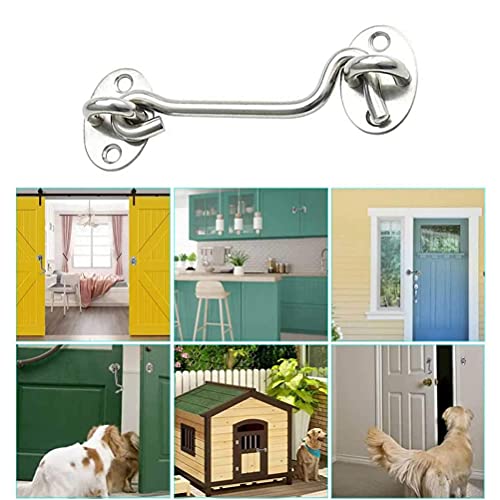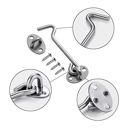 Metdek Gancio Della Cabina Chiusura a Occhiello,4 Pezzi Acciaio Inox Gancio per Cabina Chiavistello con Gancio e Occhiello Tipo Silent con 16 Pezzi Viti di Montaggio per Capanni Porta Finestre(4'')