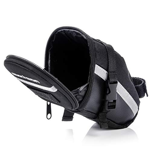 Progettato da meteor per la tua migliore esperienza - Scomparto principale con cerniera realizzato con materiali anti-spruzzi. Strisce riflettenti e logo per una migliore visibilità alla sera. Chiusura con cinturino in velcro regolabile per un ciclismo stabile e una rapida installazione o rilascio sotto la sella. Ulteriori portalampada situato sul coperchio.