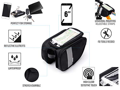 Meteor Borsa Telaio Bici Borsone Manubrio Bicicletta Borsone Impermeabile Touch Screen Cellulari Supporto Adatta per Un massimo di 6 Pollici - borsa della Sella - Accessori Bici (TORYS)