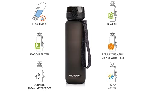Meteor Bottiglia Acqua Senza BPA Borraccia per Bambini Adolescenti e Adulti per Bici Sportivo Campeggio Scuola Ufficio Palestra Plastica Tritan (1000ml, Nero)
