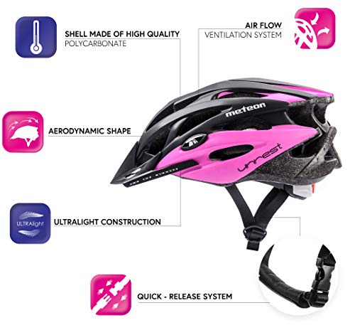 Meteor Casco Bici Ideale per Giovani e Adulti Donna e Uomo Caschi Perfetto per Downhill Enduro MTB Scooter Helmet per Tutte Le Forme di attività in Bicicletta Unrest (XL(61-63cm), Nero/verde)