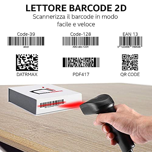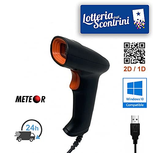 METEOR Lettore Codici Barcode 2D QR Scanner a Barre PROFESSIONALE,Scanner Laser CCD Luce Rossa con Cavo USB per Linux Mac e Windows pc Plug e Play (Nero e Arancione) Computer, Notebook, Windows XP/7/8