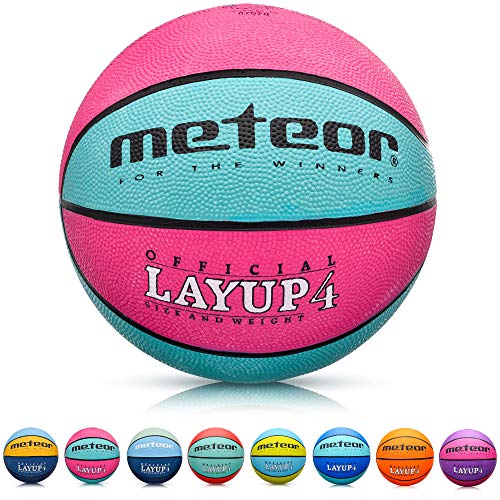 Meteor Pallone Basket Palla Basketball Taglia 4 - Bambini Giovani perfetto per Allenamento e Divertimento - Gonfiabili Pallacanestro Mini - Layup (4, rosa/blu)