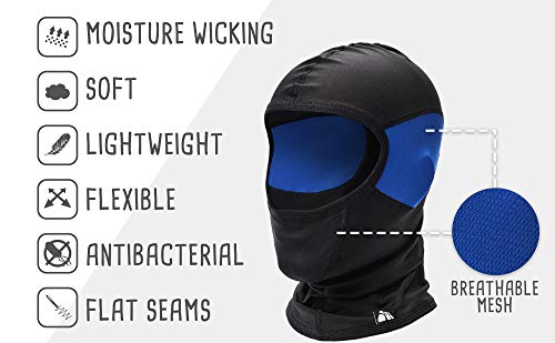 Tessuti durevoli e di alta qualità - il passamontagna è realizzato con elastici termoattivi leggeri e materiali morbidi. Assorbe efficacemente il sudore. Le cuciture piatte evitano il prurito della pelle. Il passamontagna ha un'apertura per gli occhi, pannelli a maglie per aumentare il flusso d'aria su bocca e orecchie e ridurre al minimo la condensa sugli occhiali. Il materiale traspirante con ioni d'argento antibatterici previene i cattivi odori e prolunga l'uso della maschera.
