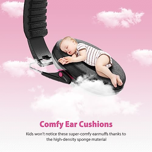 Dr.meter Cuffie Auricolari Bambini, Cuffie protettive per bambini 27SNR con cuffie antirumore per bambini Cuffie per dormire studiare sparare Fascia per la testa dei bambini regolabile rosa rossa