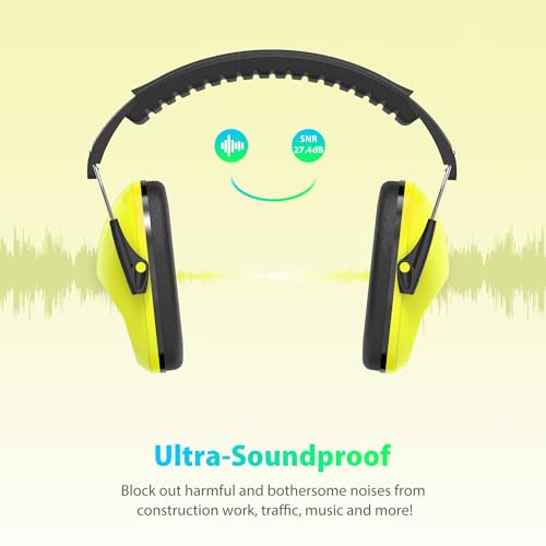 Dr.meter Cuffie Auricolari Bambini, Cuffie protettive per bambini con cuffie antirumore per bambini Cuffie per dormire studiare sparare Fascia per la testa dei bambini regolabile 27NRR giallo