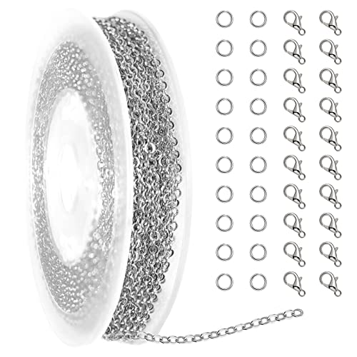 10 Metri Catenine per Collane, Catena Acciaio Collane Fai da Te con 40 Anelli di Salto e 20 Chiusure di Aragosta, Catena Collana Fai da Te, per Accessori di Gioielli Fai da Te, 3 mm (Argento)
