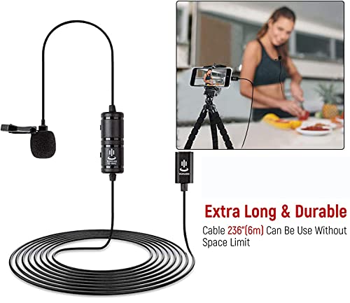 6 Metri Microfono Lavalier Professionale a Condensatore Omnidirezionale compatibile con iPhone 6/7/7 plus/8/8 plus/11/11 Pro/11 Pro Max/12, iPhone SE/X/XS/XR,YouTube Facebook Registrazione Video
