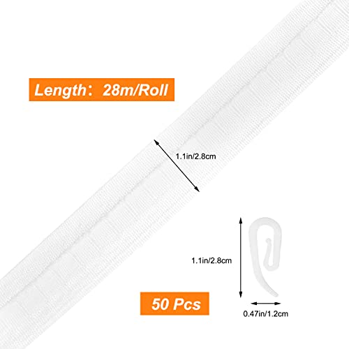 28 Metri Nastro per Tende,Fettuccia per Tende, Nastro Arricciatenda, Fettuccia Arricciatenda, Nastro per Tende con 50 Pezzi Ganci, Nastro per Tende Plissettato, Nastro per Tende in Poliestere(Bianco)