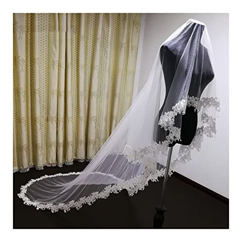 3 Metri con Pettine Velo da Sposa Decalcomania Completa Bordo Applique Cattedrale Velo da Sposa Velo da Sposa Bianco Avorio Velo Veli da Sposa per spose(Color:White,Size:200cm)