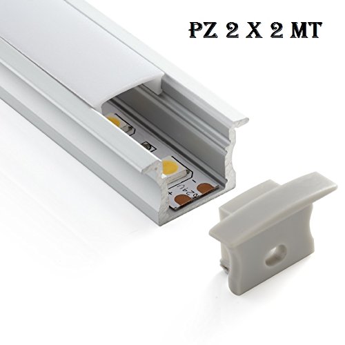 4 METRI PROFILO ALTO DA INCASSO IN ALLUMINIO LP3020 IN 2 BARRE DA 2 MT PER STRISCE A LED CON COVER OPACA TAPPI E GANCI DI MONTAGGIO INCLUSI