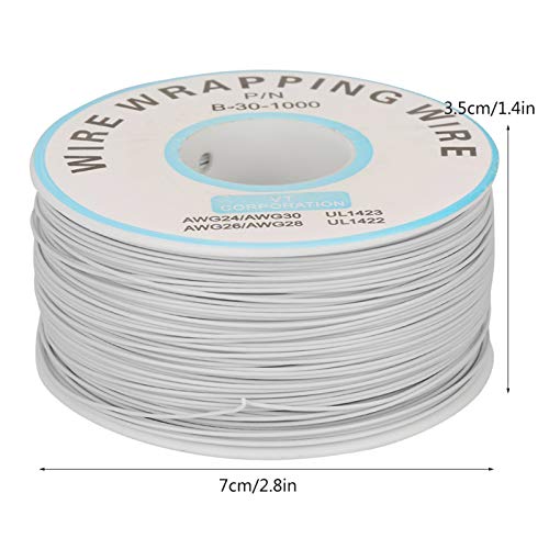 200 Metri 1 Rotolo Avvolgimento Filo Singolo Trefolo 30AWG Cavo in Rame Stagnato Durevole Test Elettrico Industriale con Bobina di Plastica per Scheda Madre Del Computer Portatile(white)