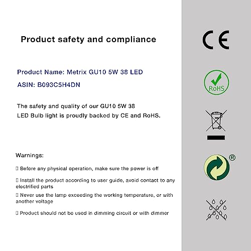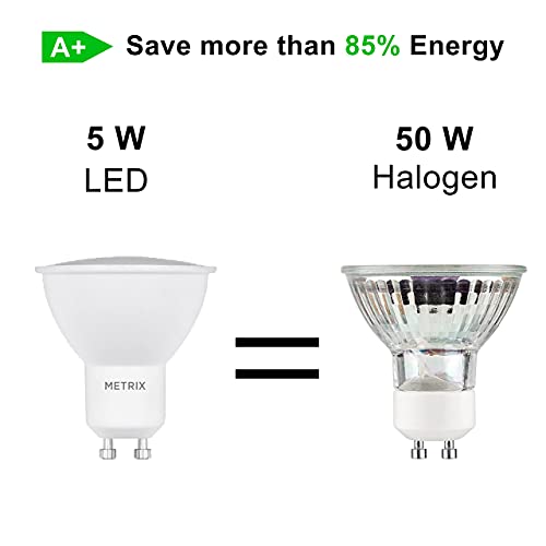 Metrix Lampadina LED GU10, 400 lumen, luce bianca calda, a risparmio energetico, 5 W, 3000 Kelvin, sostituisce lampadine alogene da 50 W, angolo di diffusione di 38 gradi, 10 pezzi