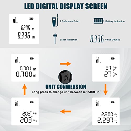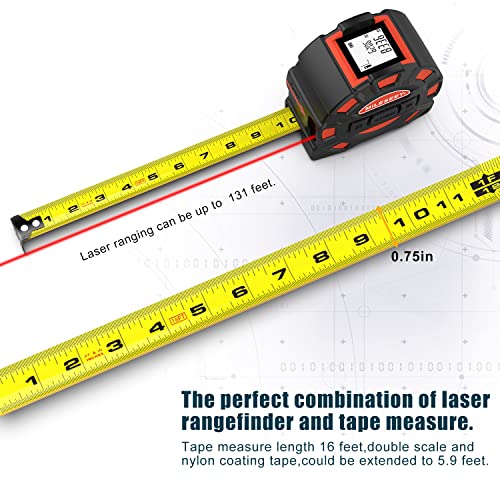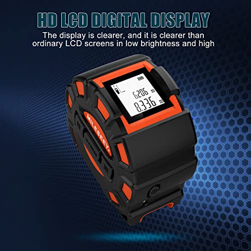 【Misurazione laser e metro a nastro】:Combinazione di distanziometro laser digitale 40M e metro a nastro 5M, un nastro di misurazione autobloccante, un display digitale LCD HD in bianco e nero, i risultati della misurazione sono più visibili!